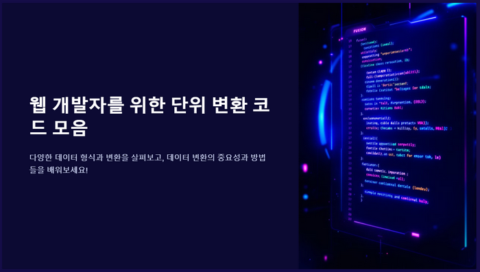 웹 개발을 하다 보면 다양한 데이터 형식과 변환을 자주 만나게 되죠. 오늘은 그 중에서도 웹 개발자를 위한 다양한 단위 변환 코드 모음을 함께 살펴보려 해요. 이 글을 읽으면서 여러분도 데이터 변환의 중요성과 그 방법들을 배워보세요!