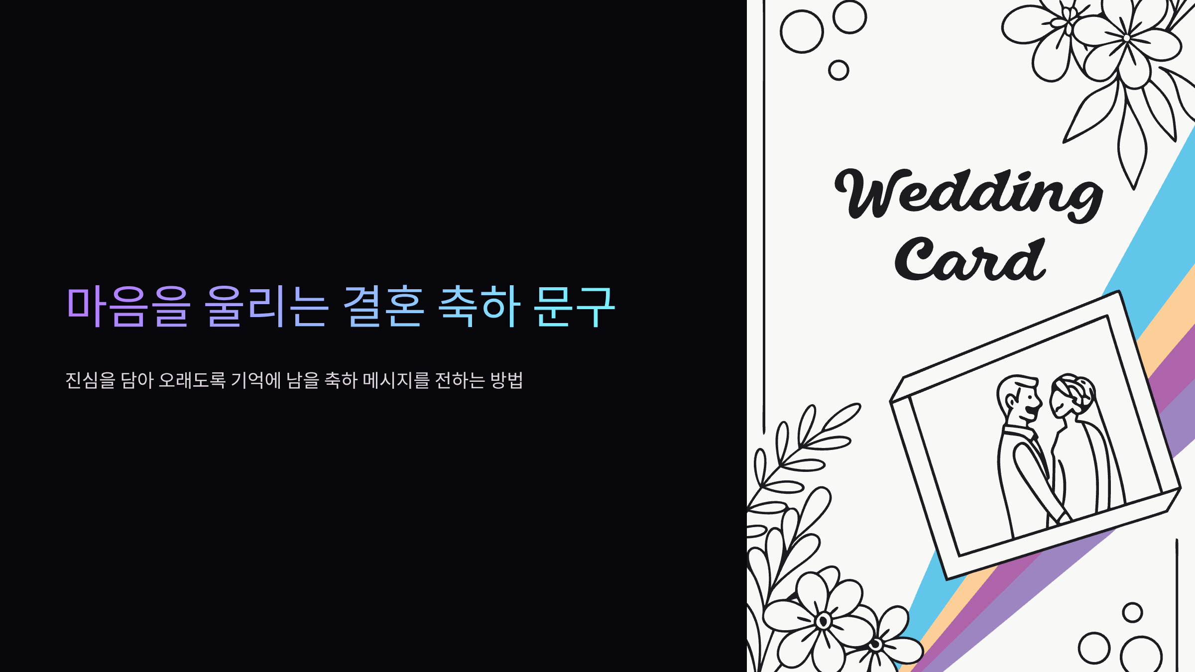 신랑 신부에게 깊은 감동을 선사하는 대표적인 문구들이 있습니다. 이 문장들은 축하의 마음은 물론, 두 사람의 미래를 응원하는 진심이 담겨 있어 오랫동안 기억에 남습니다.