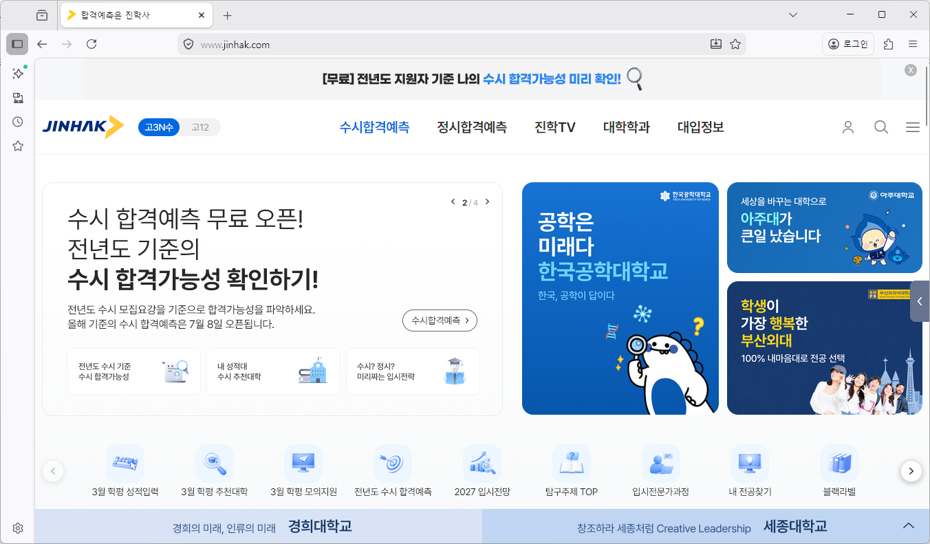 진학사 홈페이지 바로가기 (https://www.jinhak.com)